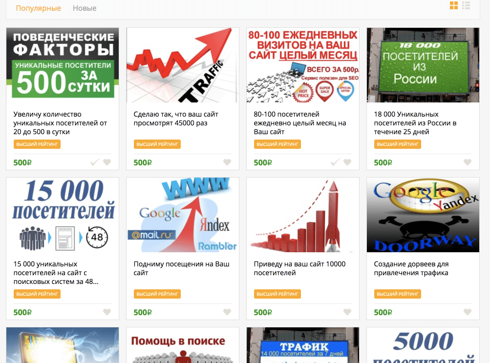 Все очень просто,переходим в популярный сервис фриланс-услуг в раздел трафик, и наблюдаем как данные товарищи предлагают купить уникальных посетителей к себе на сайт.